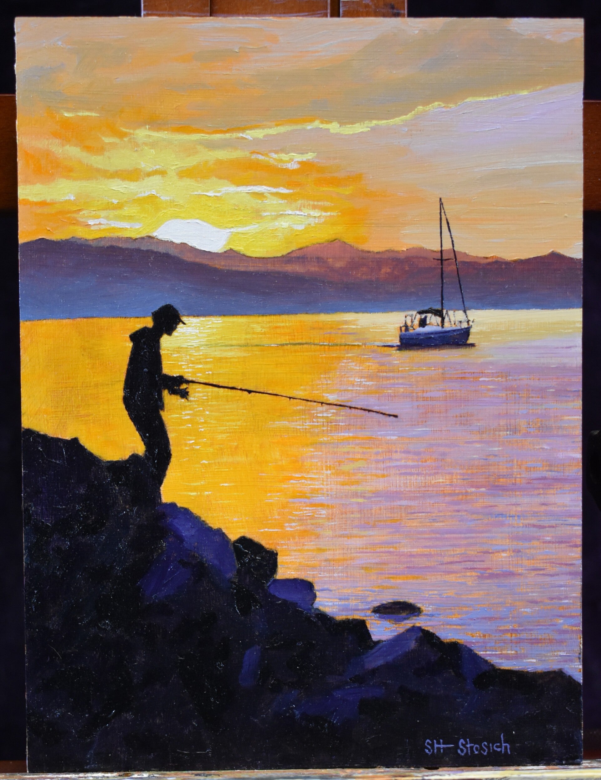 12x9 inch Oil on Gessoed wood panel. Signed bottom right SH Stosich. Finished with Gamvar gloss varnish.