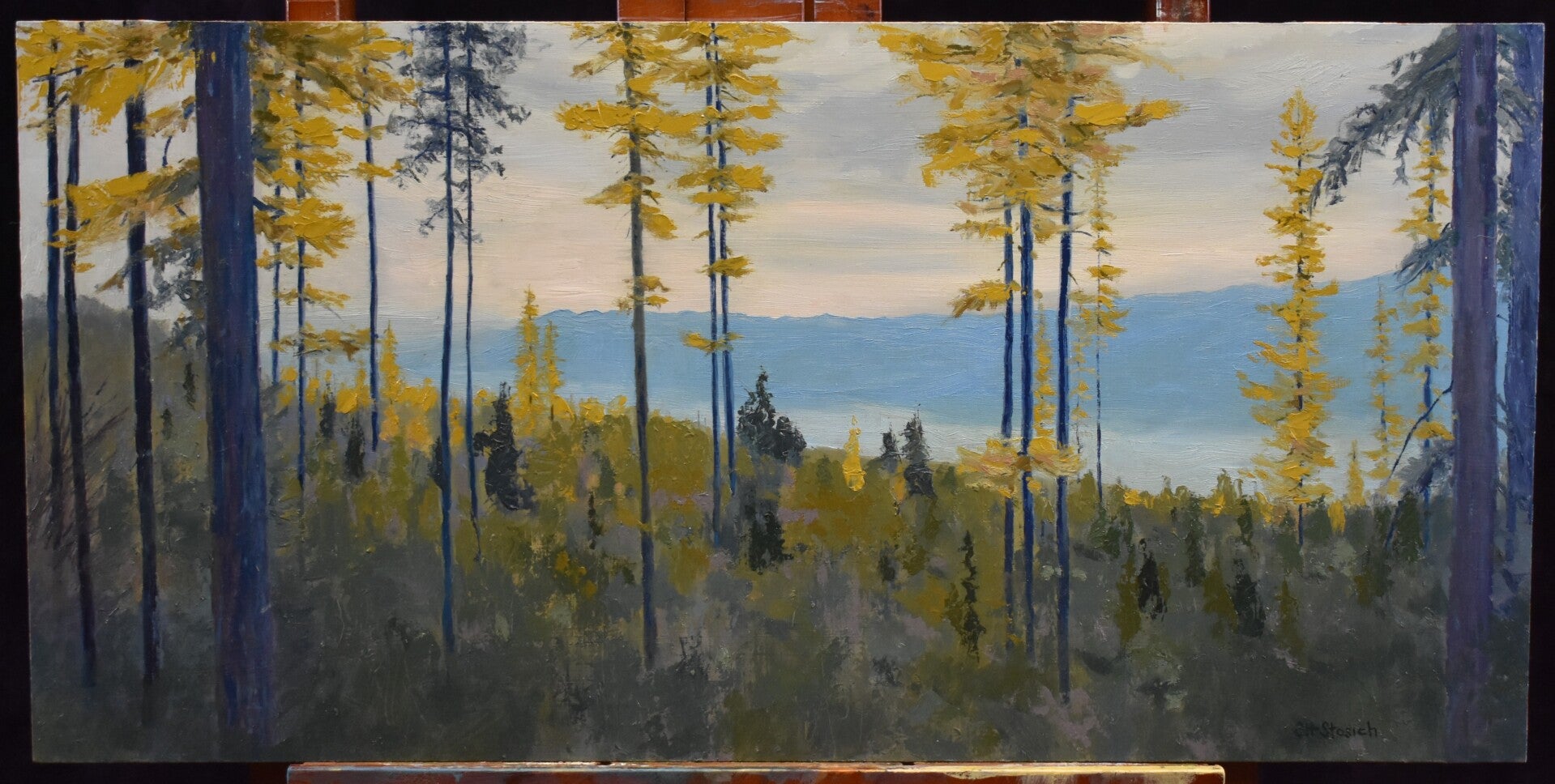 12x24.5 inch Oil on Gessoed wood panel. Signed bottom right SH Stosich. Finished with Gamvar gloss varnish