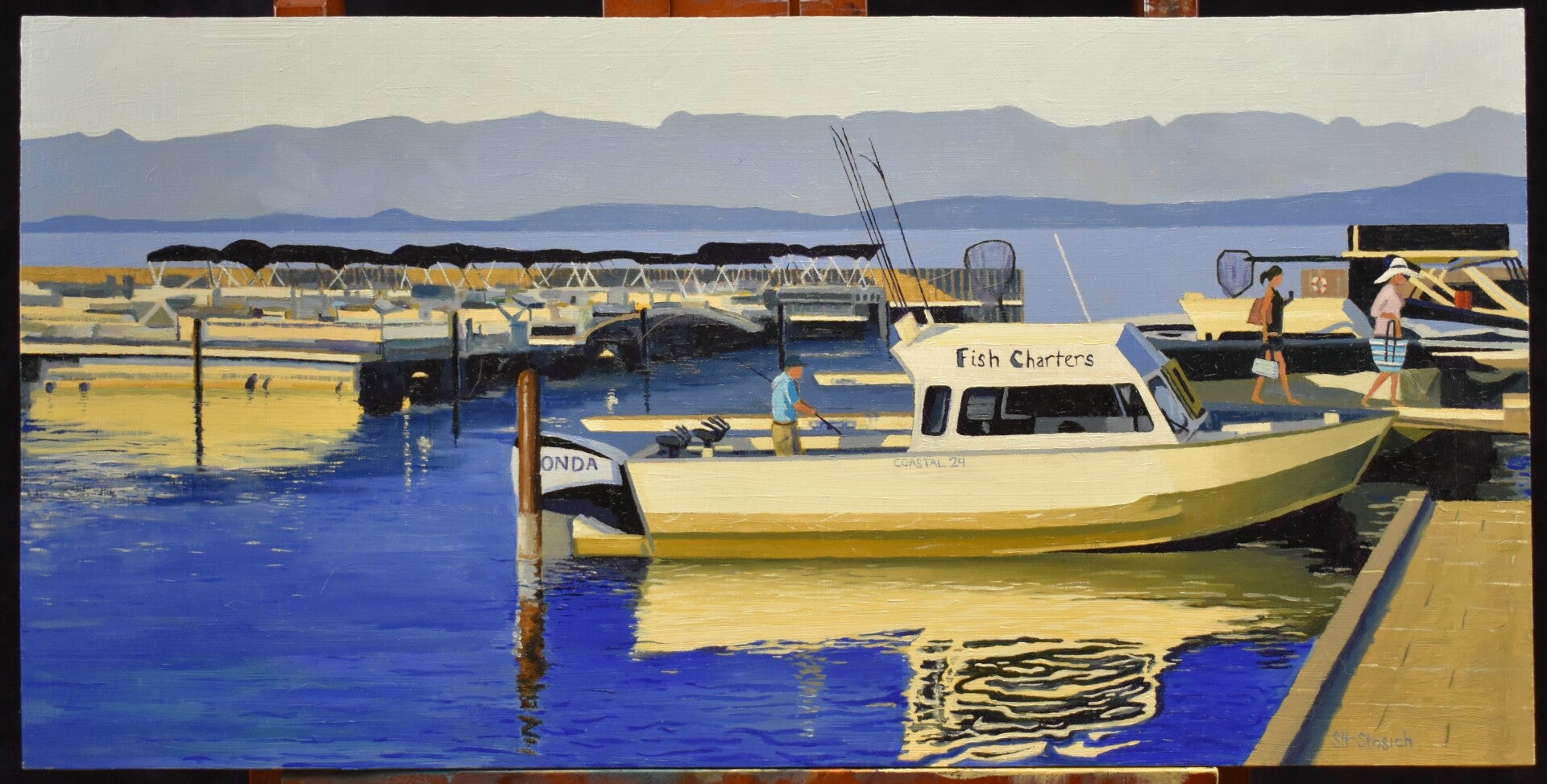 12x24 inch Oil on Gessoed wood panel. Signed bottom right SH Stosich. Finished with Gamvar gloss varnish