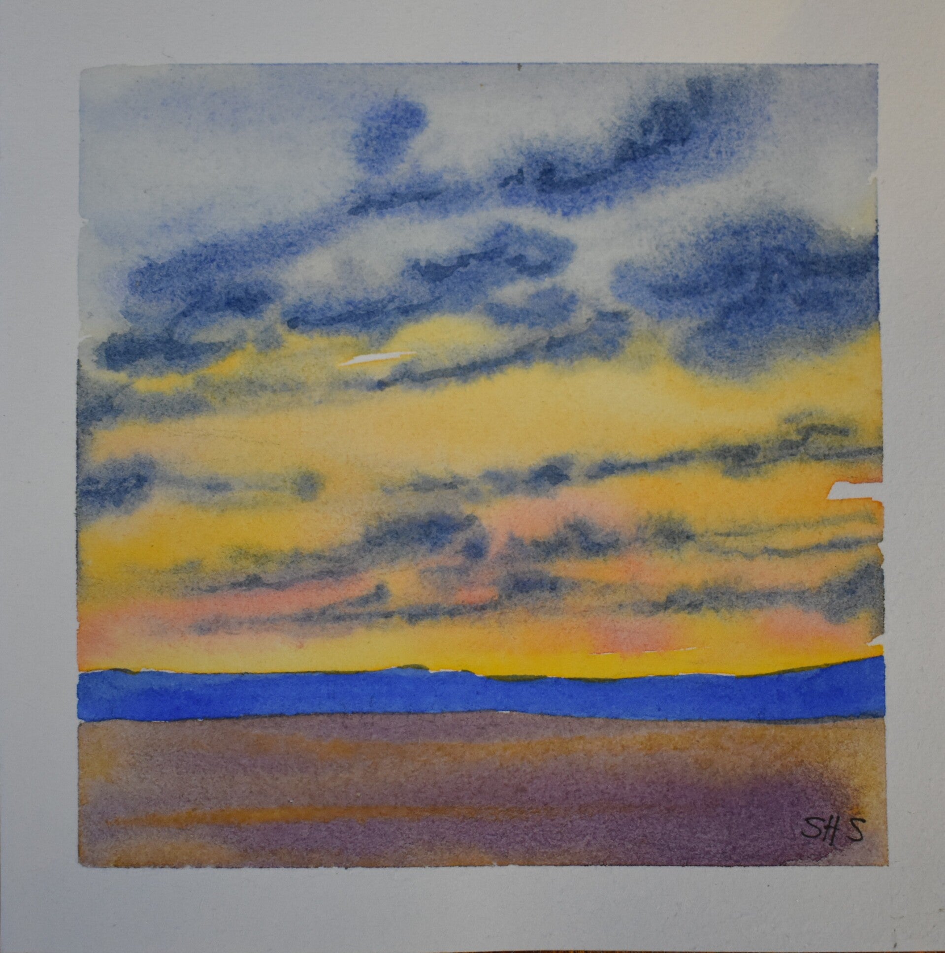 5x5 inch Watercolor on 6x6 inch 140lb Cold pressed Watercolor paper. Initialed bottom right with SHS.